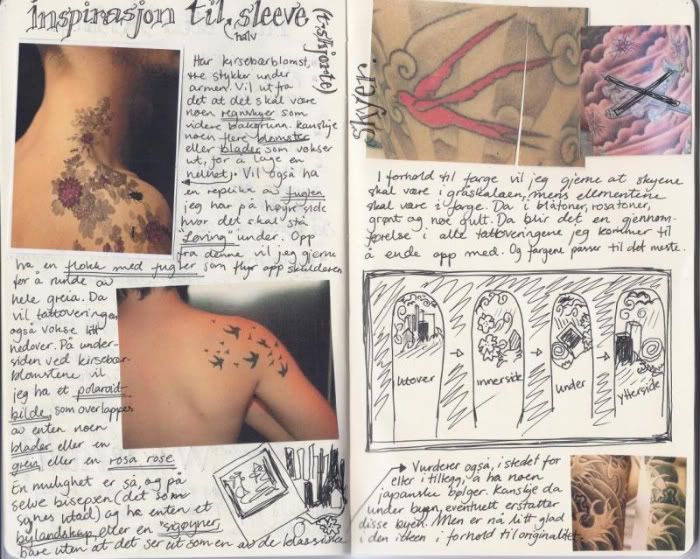 and my tattoo sketch is finally done! it's going to be a half sleeve with a pink rose, a polaroid, rain clouds, angry ocean, a city and birds flying in the sky.