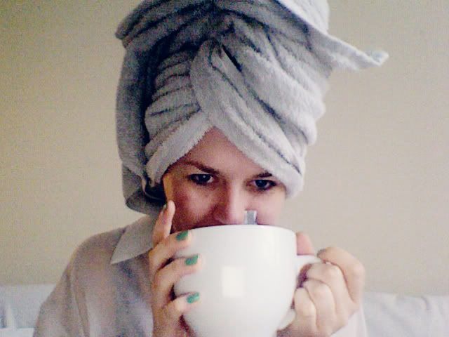 morning routine: wake up. snooze. wake up. shower. dress. make breakfast. drink tea.